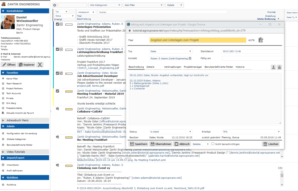 EGroupware integriert verschiedene Anwendungen und verknüpft so Ihre Kundendaten perfekt.