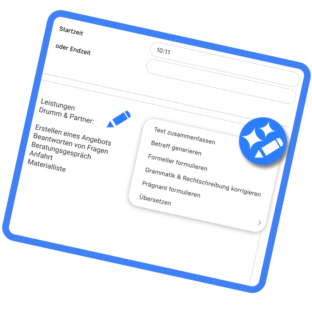 Wie bei allen Anwendungen unterliegt die Nutzung den Zugriffsrechten (Ausführen), die wir standardmäßig für die Standardgruppe festlegen, UND der Konfiguration der KI-Verbindung. Wir bieten einen KI-Proxy-Dienst an, der auf IONOS-KI-Modellen läuft und automatisch entsprechend dem Budget abgerechnet wird. DeepL kann über diesen Dienst auch für Übersetzungen genutzt werden.