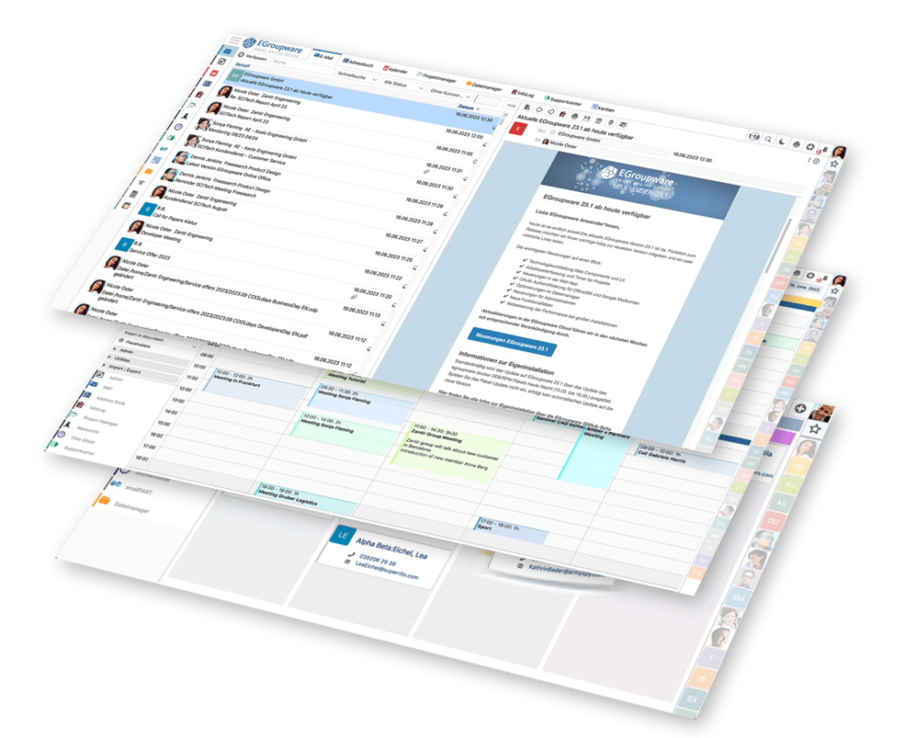 EGroupware is the online office for maximum digital sovereignty. Secure thanks to open source and “Made in Germany”. Development, hosting and support take place in Germany. Support is available in several languages.