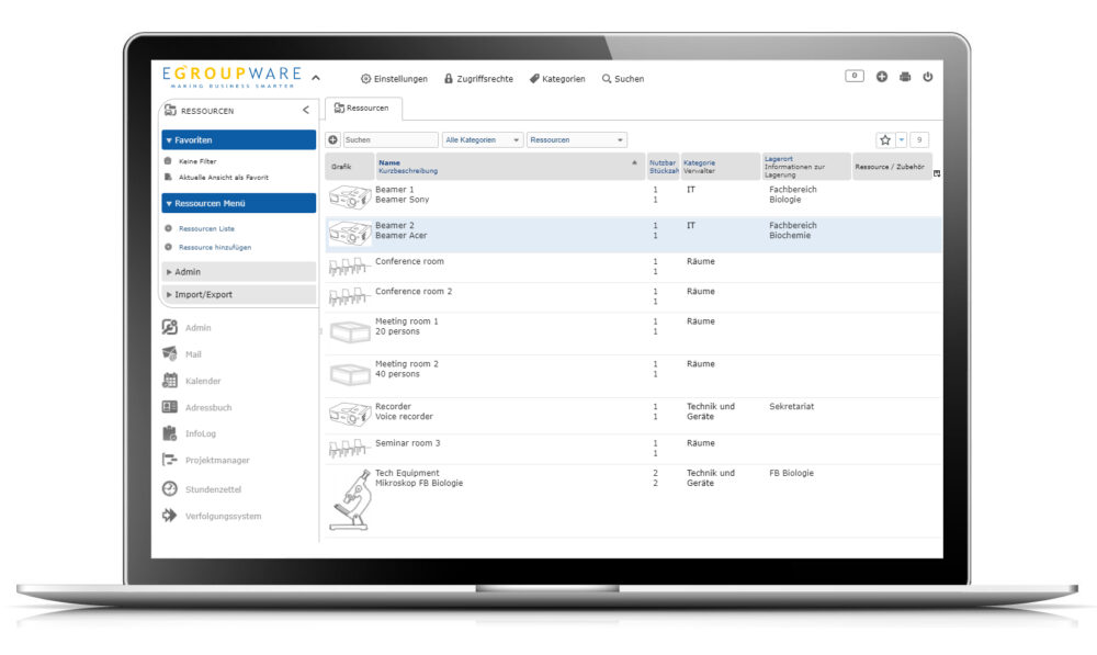 The Resources module allows you to easily manage and book resources such as meeting rooms, projectors, vehicles and many other objects that belong to your organisation. Keep track of rented equipment.