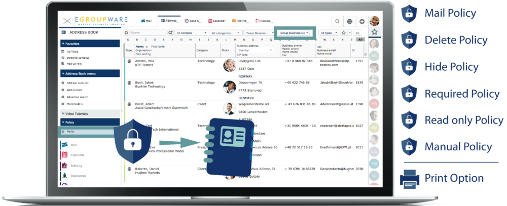 Which fields are mandatory? Who in the company is authorised to access which information? Who is allowed to read the private phone numbers of the contacts? The new policies manage all those regulations.