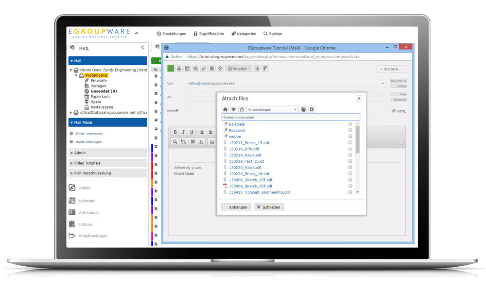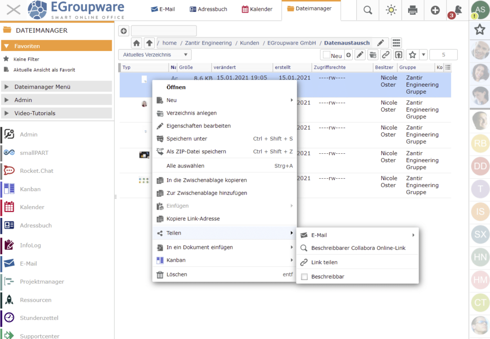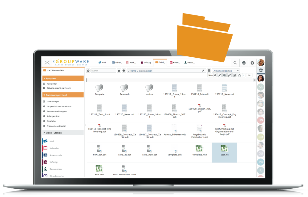 El gestor de archivos EGroupware le ayuda a estructurar sus archivos en la empresa y a incluir a los socios externos. Especialmente en tiempos de oficinas en casa, el gestor de archivos es un valor añadido para su empresa.