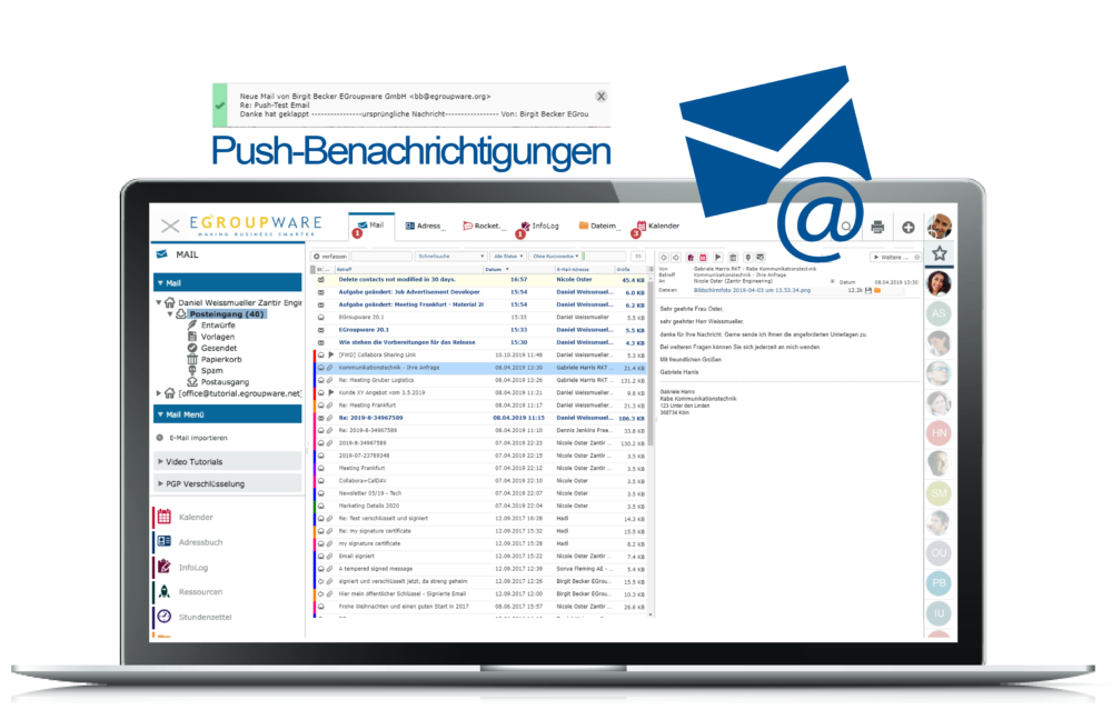 El cliente de correo electrónico de EGroupware ayuda a su equipo a procesar los correos electrónicos.
