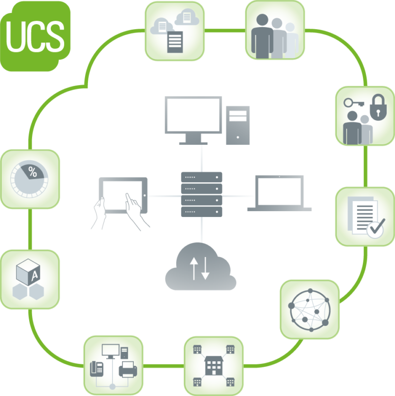 Univention Corporate Server (UCS) è una buona base per gestire in modo economico e semplice le applicazioni server e le intere infrastrutture IT. Il sistema UCS è ideale per gestire ambienti IT distribuiti ed eterogenei. Soprattutto negli ambienti IT virtualizzati puoi utilizzare UCS in modo ottimale. Non importa se nella tua azienda utilizzi sistemi Microsoft Windows, Mac OS X o Linux.
