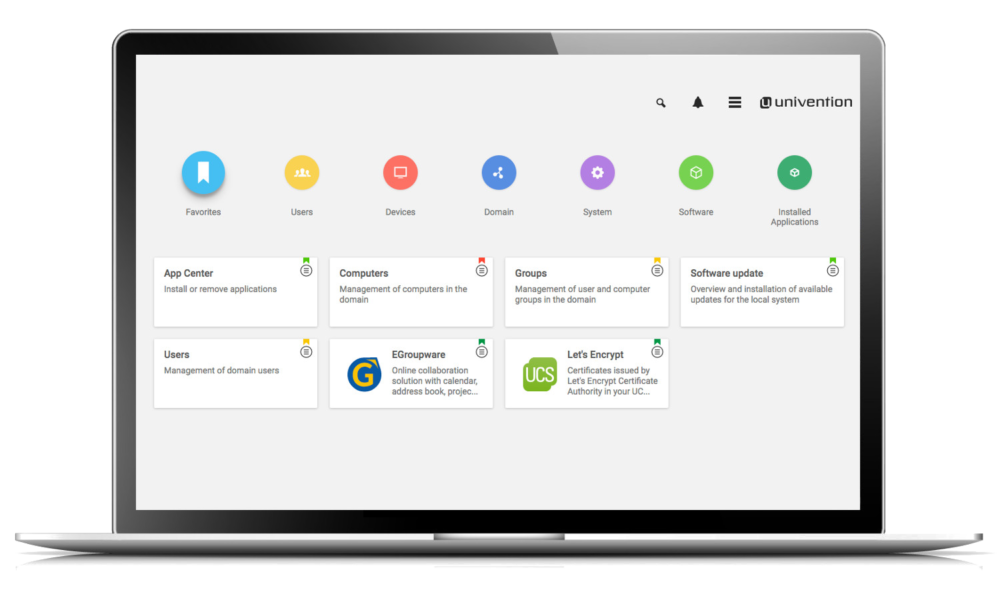 Il grande vantaggio di Univention Corporate Server è il suo sistema integrato di gestione delle identità e delle infrastrutture. In questo modo è facile amministrare applicazioni, utenti e risorse. I sistemi server vengono amministrati tramite l’interfaccia web integrata.