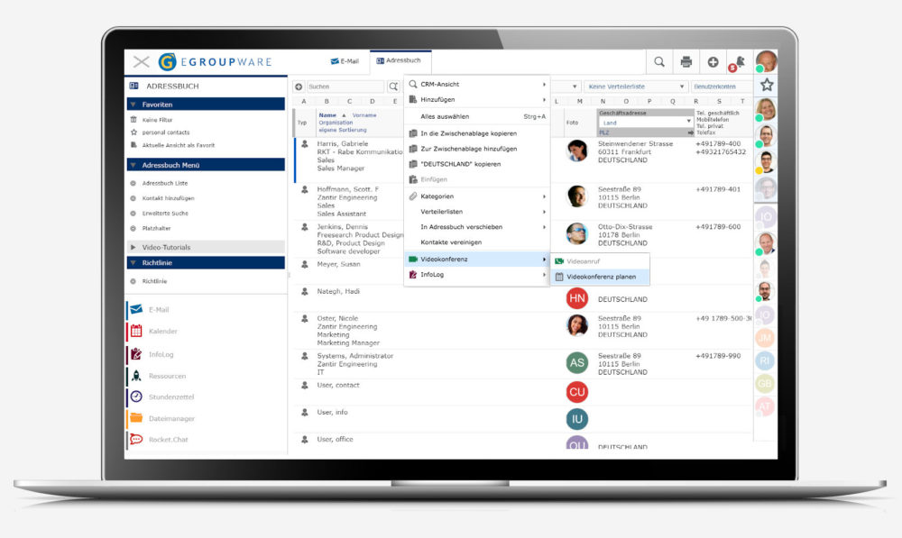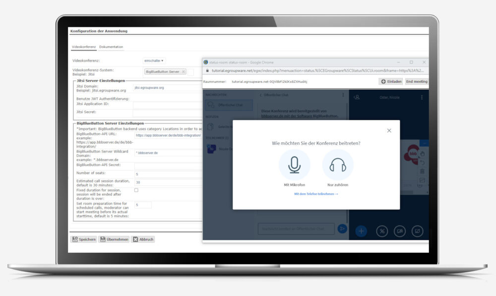 EGroupware offers you various options for a video conference or webinar room. By integrating the Jitsi or BigBlueButton solutions into EGroupware, you can use the format that suits you best.